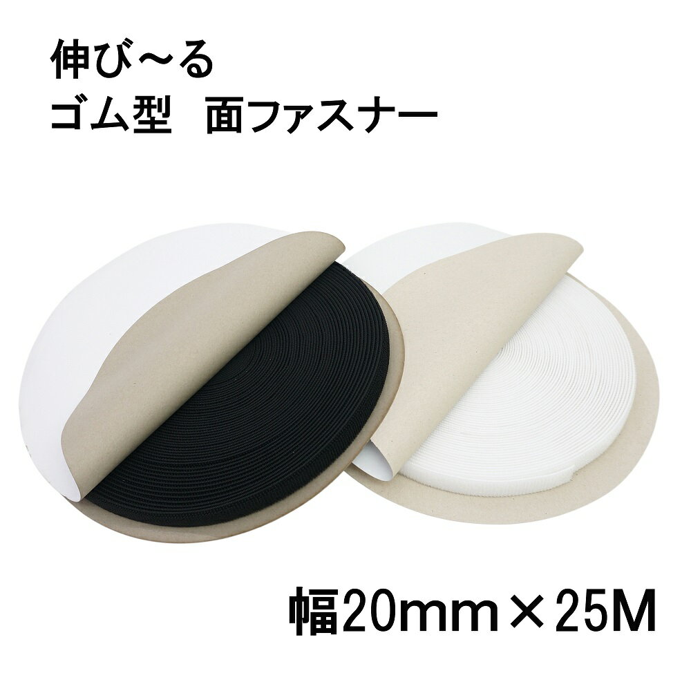 面ファスナー ゴム型(メス面) 20mm幅 25m巻 白 ...
