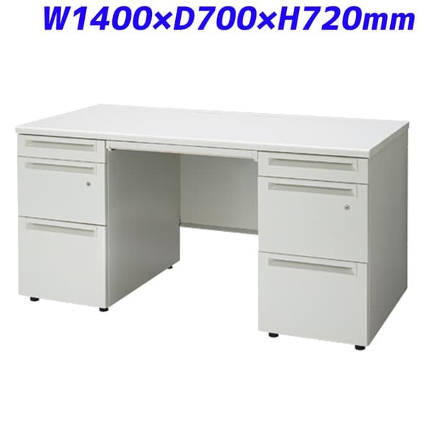 プラス 両袖机 ホワイト W1400×D700×H720mm UJ-147D...
