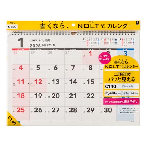 能率 NOLTY 2026年 カレンダー 壁掛け A3 C140 送...