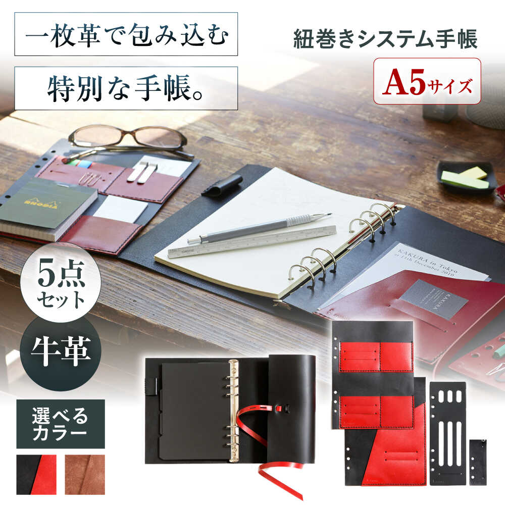 本革 A6 手帳カバー リボン フラップ ワープ...