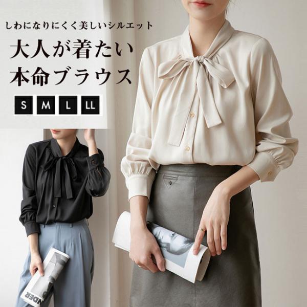 トップス ボウタイ 長袖 トップス 無地 ボウ...
