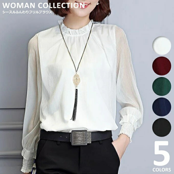 ブラウス 透け 長袖 かわいい シフォン レデ...