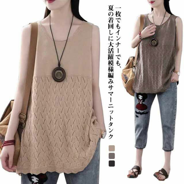 送料無料 サマーニット ノースリーブ ハイネ...