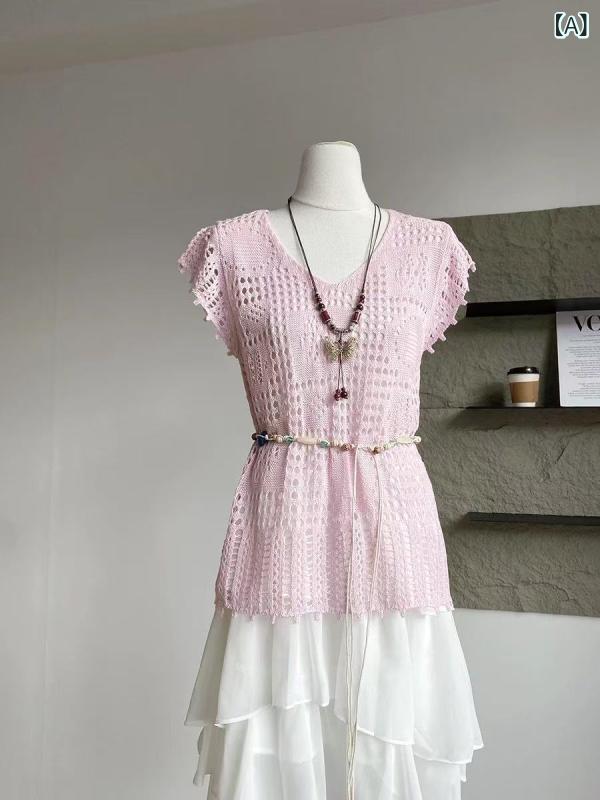 トップス レディース ボヘミアン かぎ針編み...