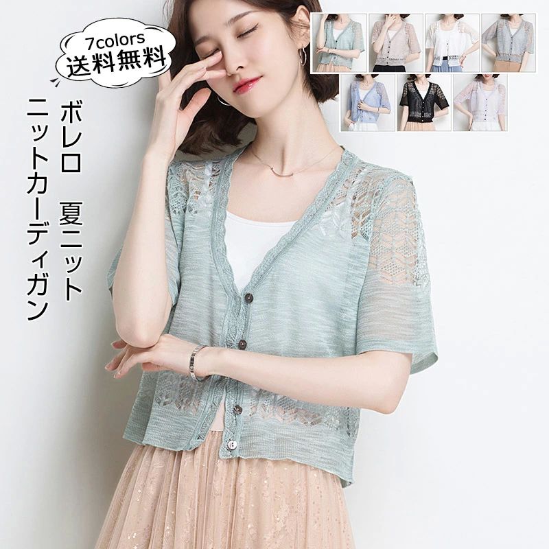 サマー ニット カーディガン 半袖 夏 レトロ ...