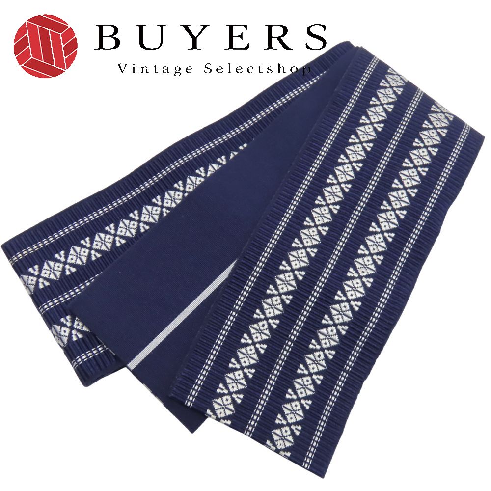 【中古】 男帯 正絹 群青色 紺 白 献上柄 角...