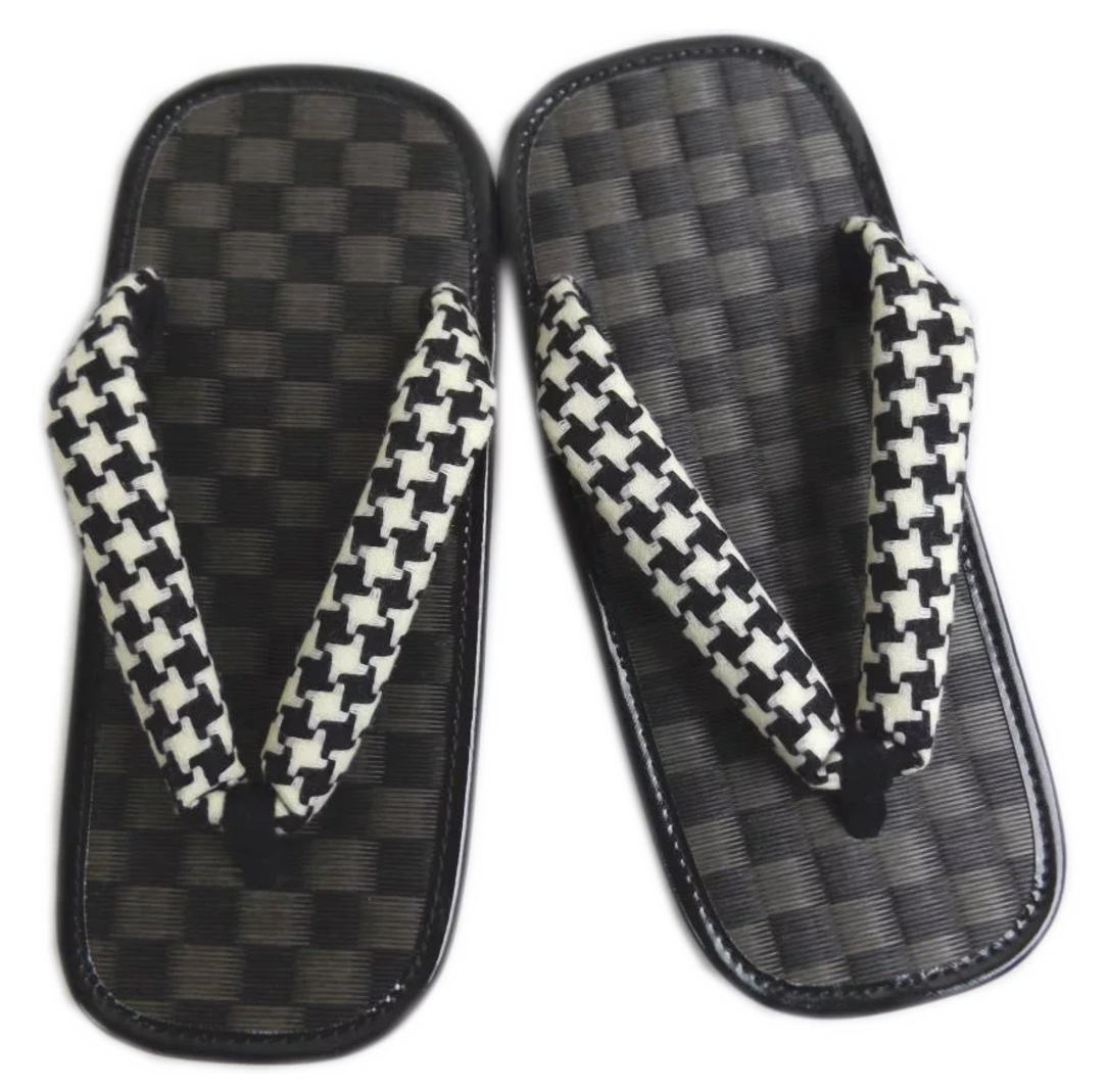 雪駄 メンズ 男性 畳表市松台 黒白千鳥格子 ...