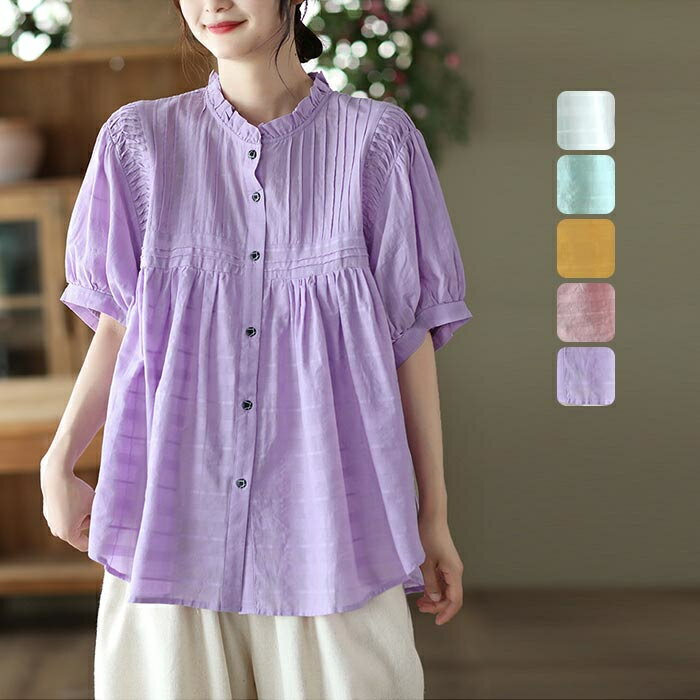 半袖シャツ レディース シャツ 綿シャツ 半...