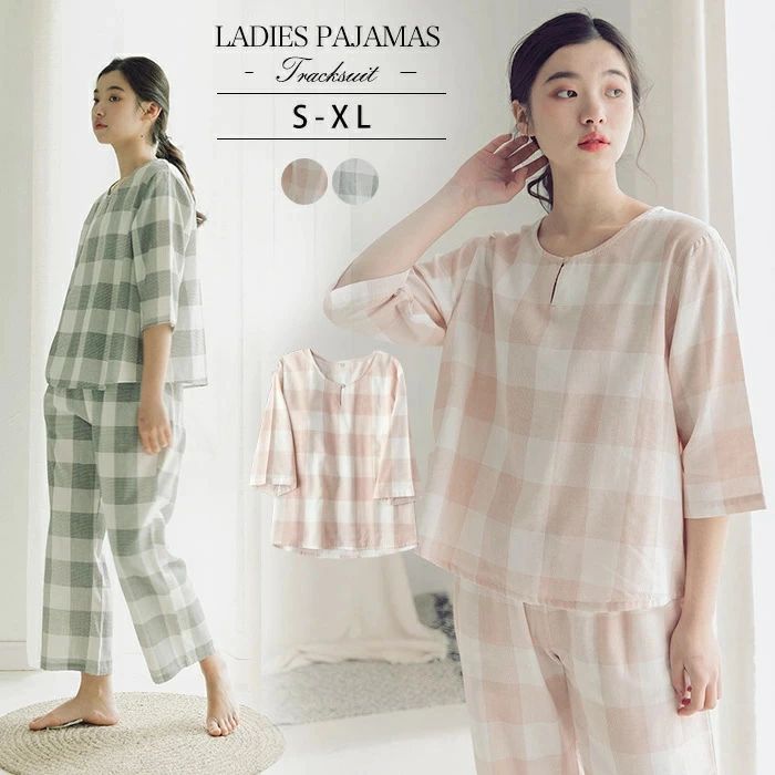 パジャマ レディース 春秋 純綿 長袖 格子柄 ...