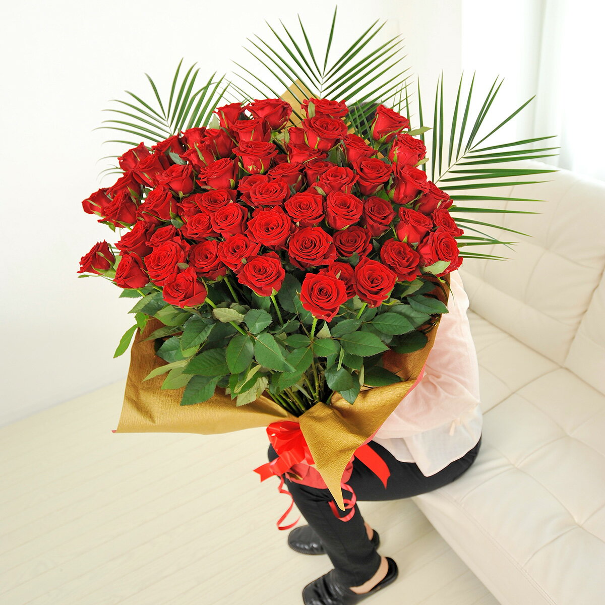高級 赤バラ 60本の花束 送料無料 誕生日 結...