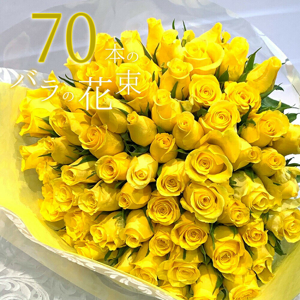 黄色バラ70本の花束 クリスマス ブラックフ...