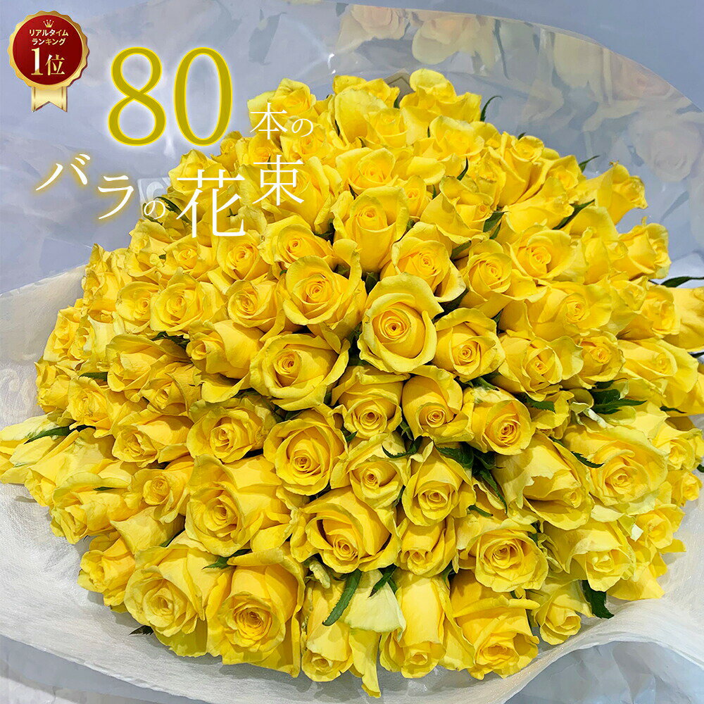 黄色バラ80本の花束 クリスマス ブラックフ...