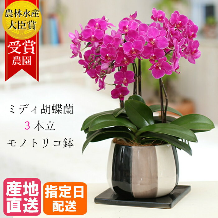 ミディ 胡蝶蘭 3本立 モノトリコ鉢 5.5号 ピン...