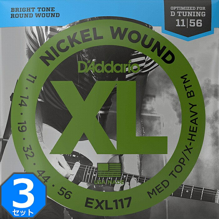 3セット D'Addario EXL117 Nickel Wound 011-056 ダダリ...