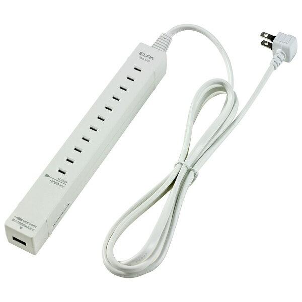 ELPA WL-USB5015B(W) スリムタップ 5個口 1.5m USBポ...