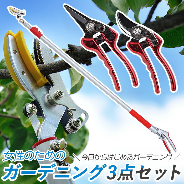 【レディース園芸3点セット】 3段伸縮式高枝...
