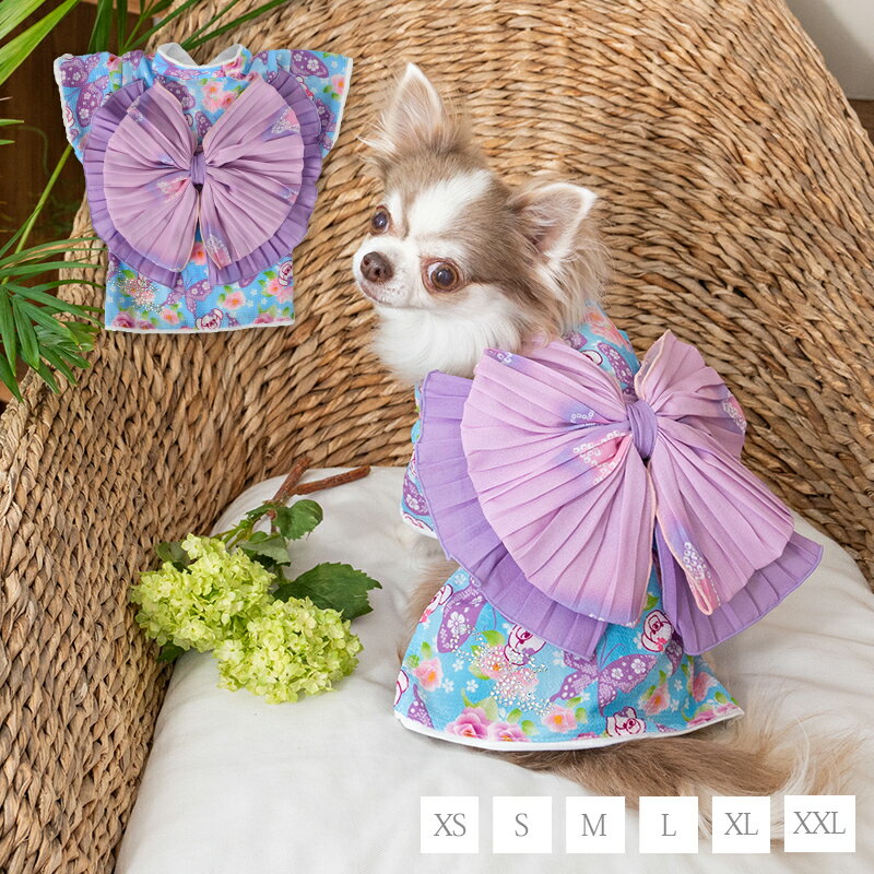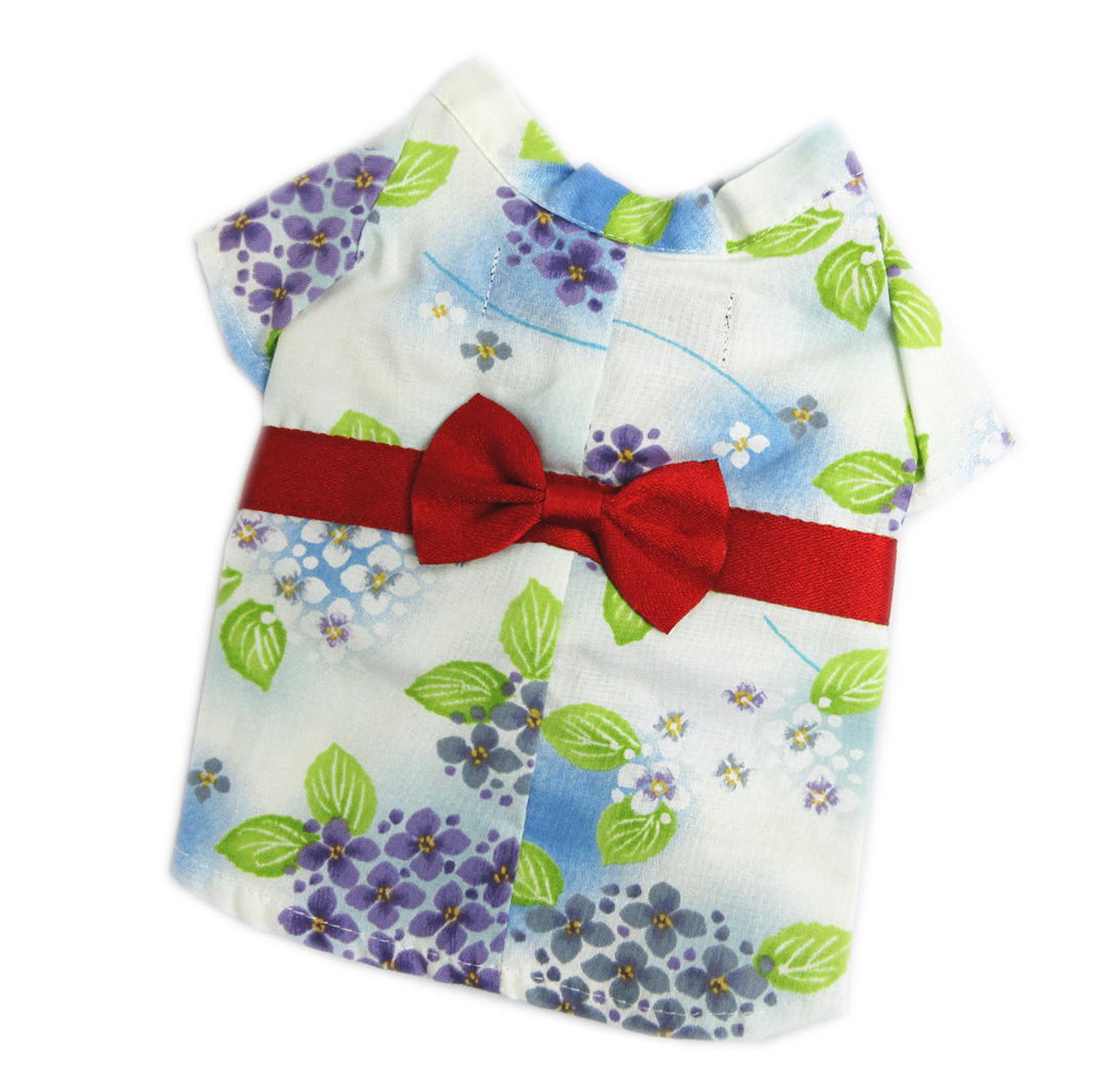 浴衣 ペット用 犬 猫 白ブルーぼかし地紫陽...