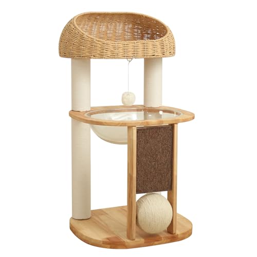 キャットタワー 多機能 猫タワー 木製 爪研...