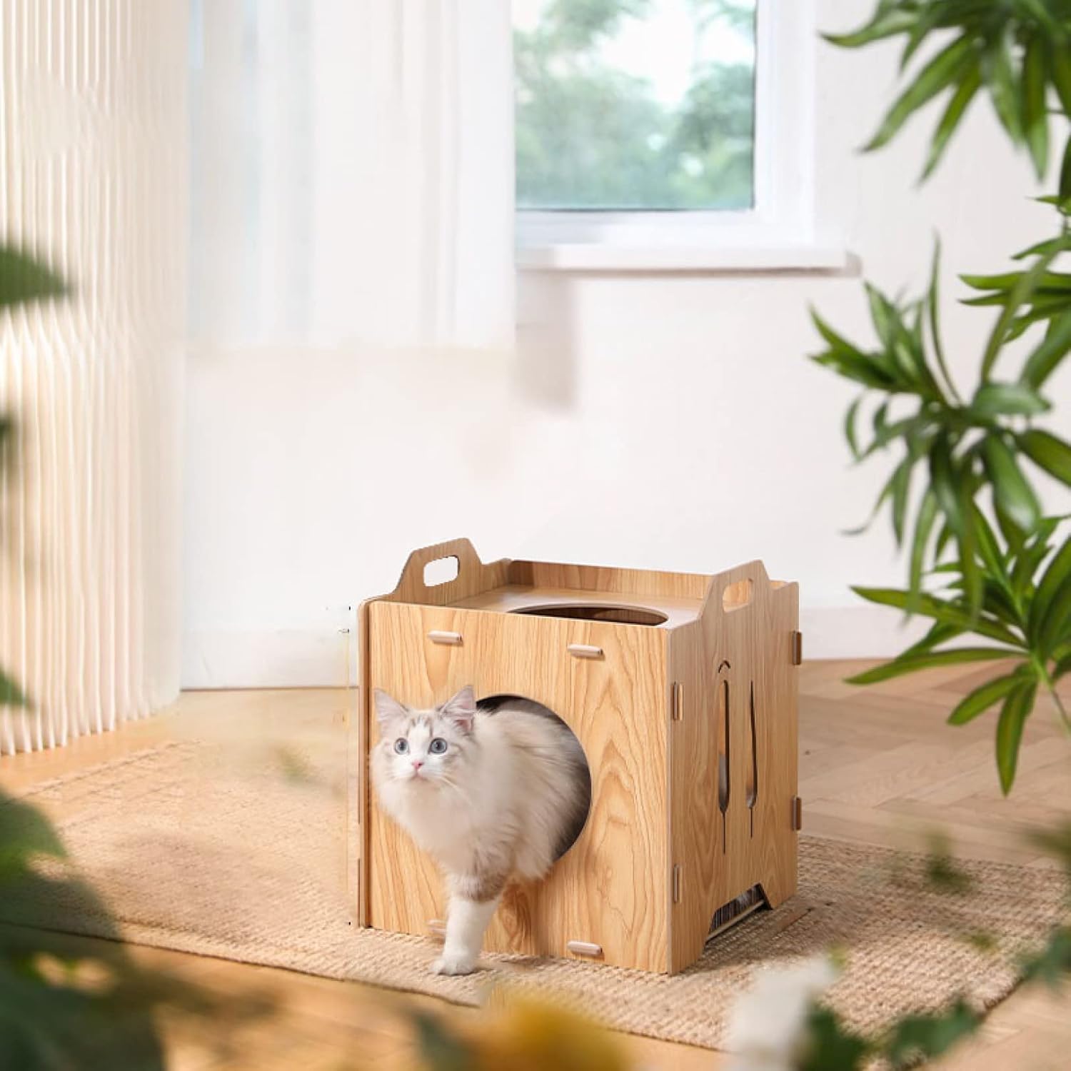 猫ハウス 木製 キャットハウス 猫用爪と...