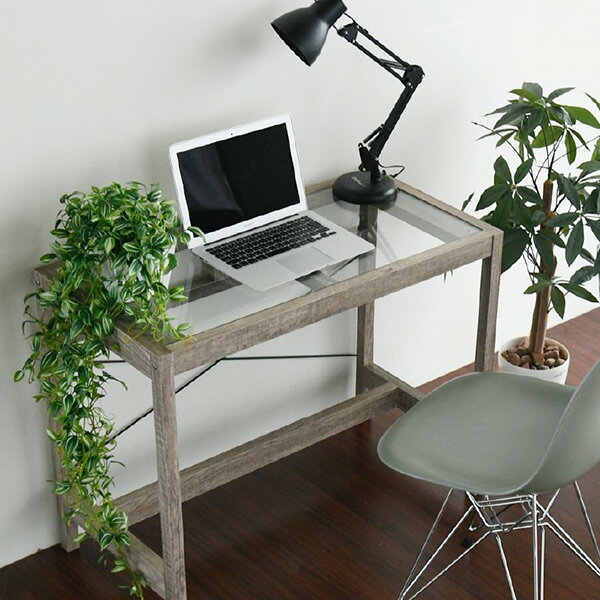 グリーンインテリア デスク 幅90 ガラス 古材...