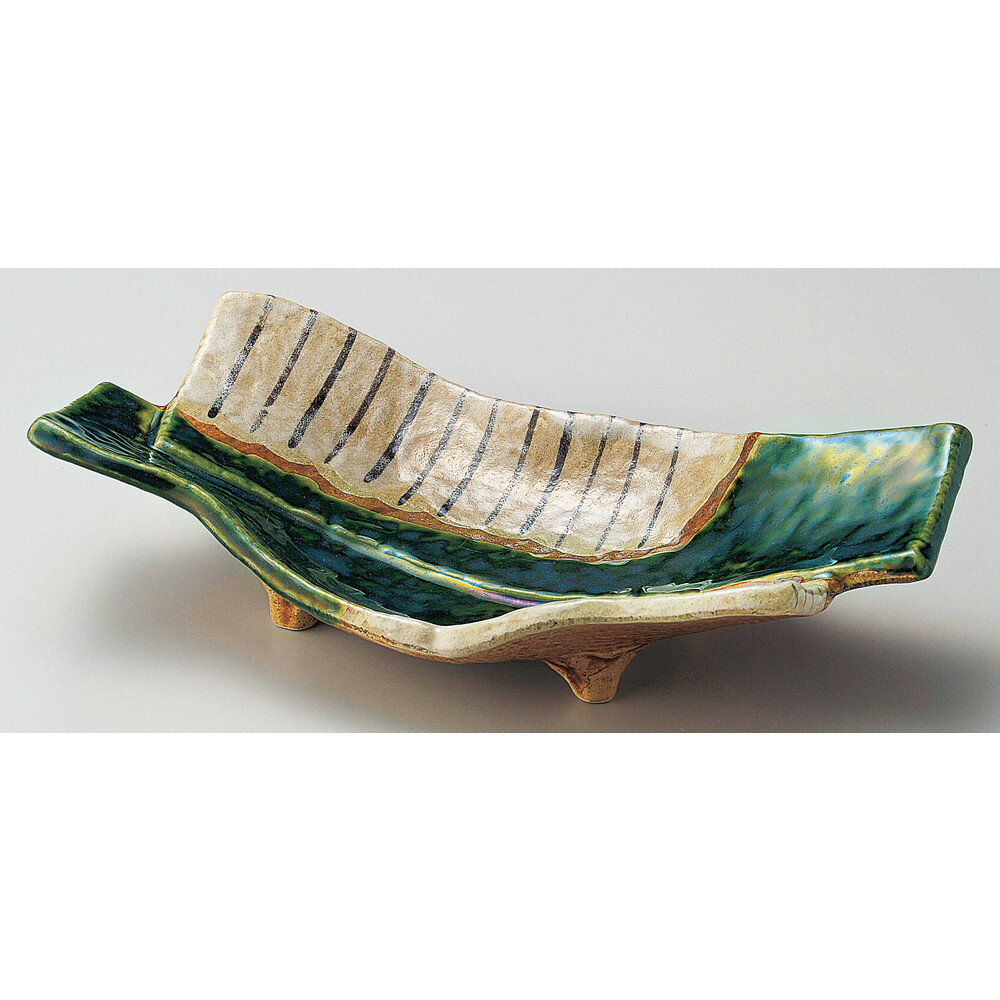 ☆ 変形中皿 ☆ 織部細十草10.0盛皿 [ 30 x 15 x 7...