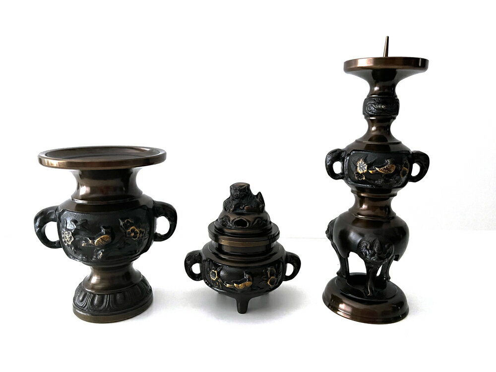 仏具 花鳥 三具足 京色 4.0寸 仏具セット 【...