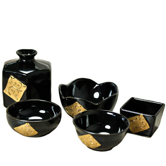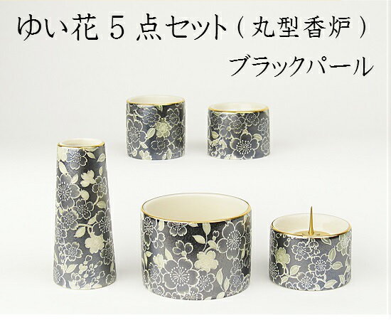 ゆい花 美濃焼5点セットブラックパール 丸型...