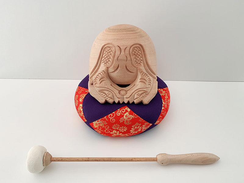 仏具 木魚セット 本楠上彫り 4.5寸