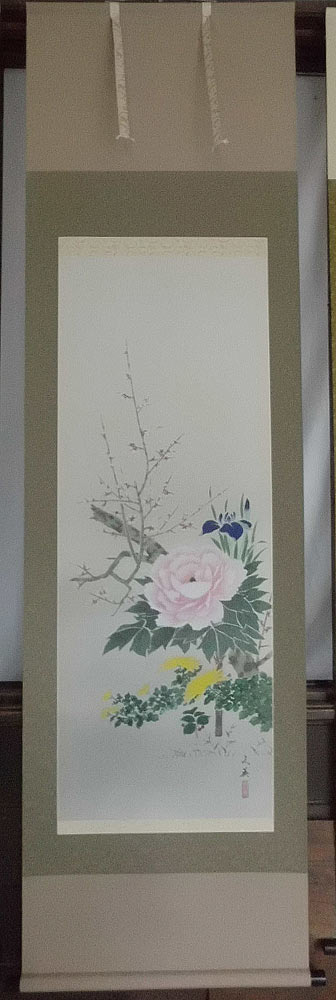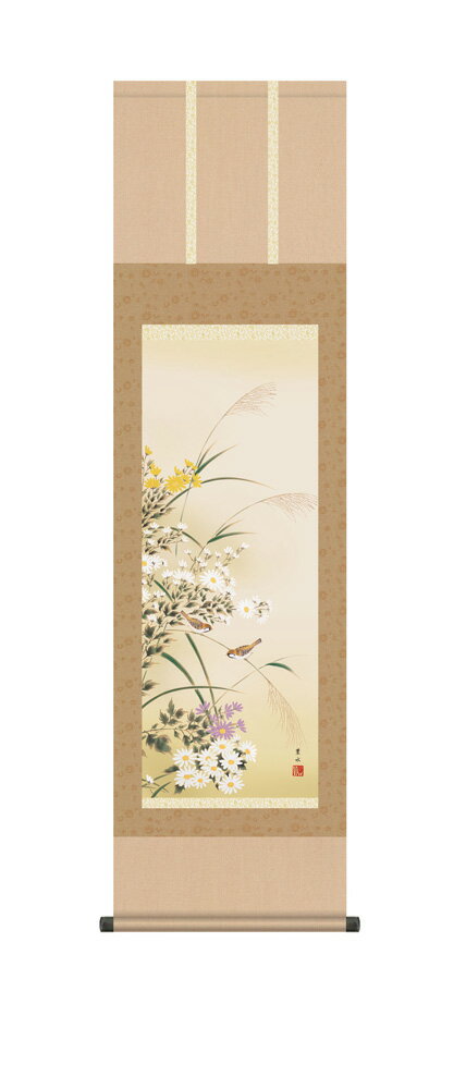 掛軸 四季草花 林 文美 掛け軸 尺五立...
