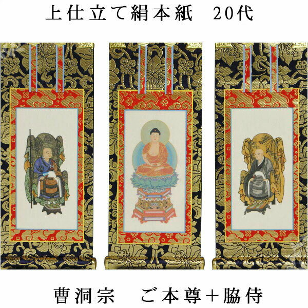 曹洞宗【掛軸:上仕立絹本紙 本尊・脇侍三...