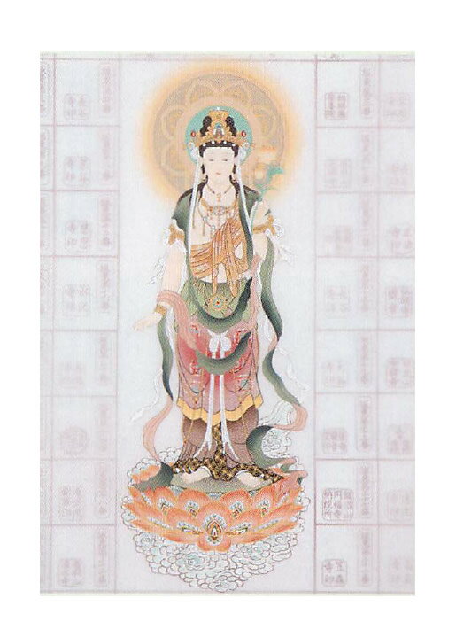 掛け軸 仏事画 龍上観音 長江桂舟 洛彩緞子...