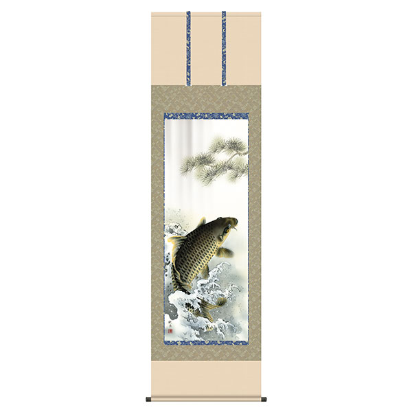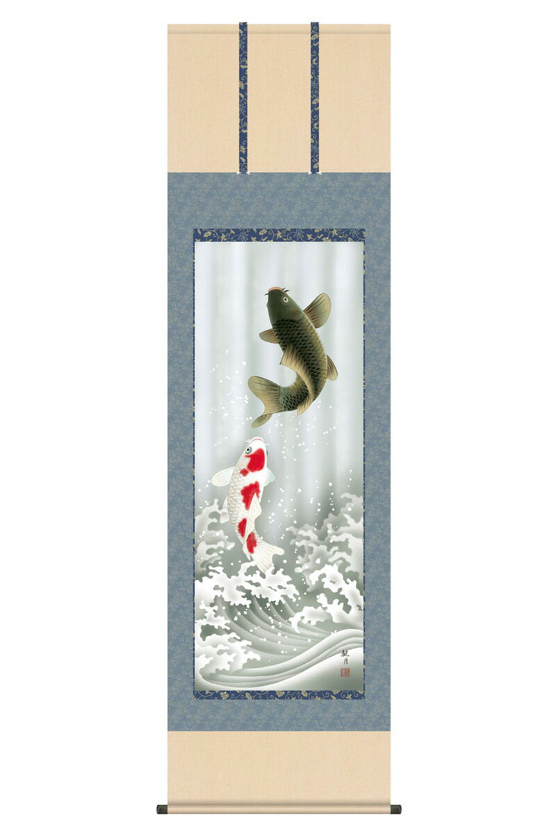掛軸 掛け軸 節句画 端午の節句 昇鯉 夫婦滝...
