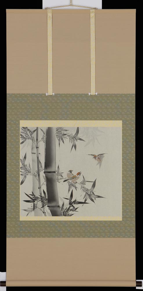 掛け軸 竹に雀 山口赤雨 美術年鑑掲載作...