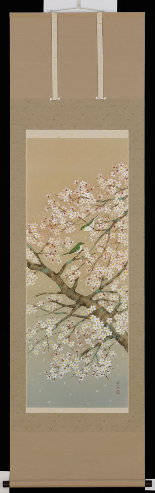 掛け軸 桜に小鳥 鈴木秀湖 美術年鑑掲載...
