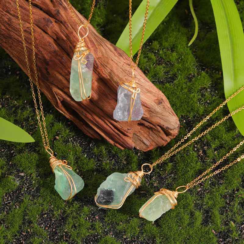 ネックレス 天然石 緑水晶 ワイヤーラップ ...