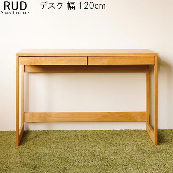 リビング デスク 幅120cm アルダー材 無垢 引...