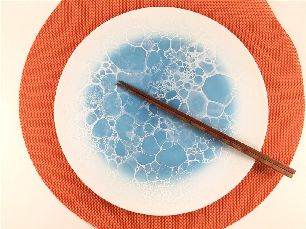 有田焼 やま平窯 26cmプレート.内ブルー白泡...