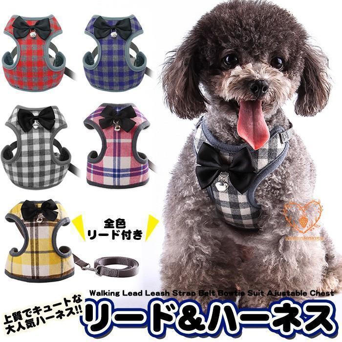 犬 猫 ハーネス リード付 ペット 服 リボン ...