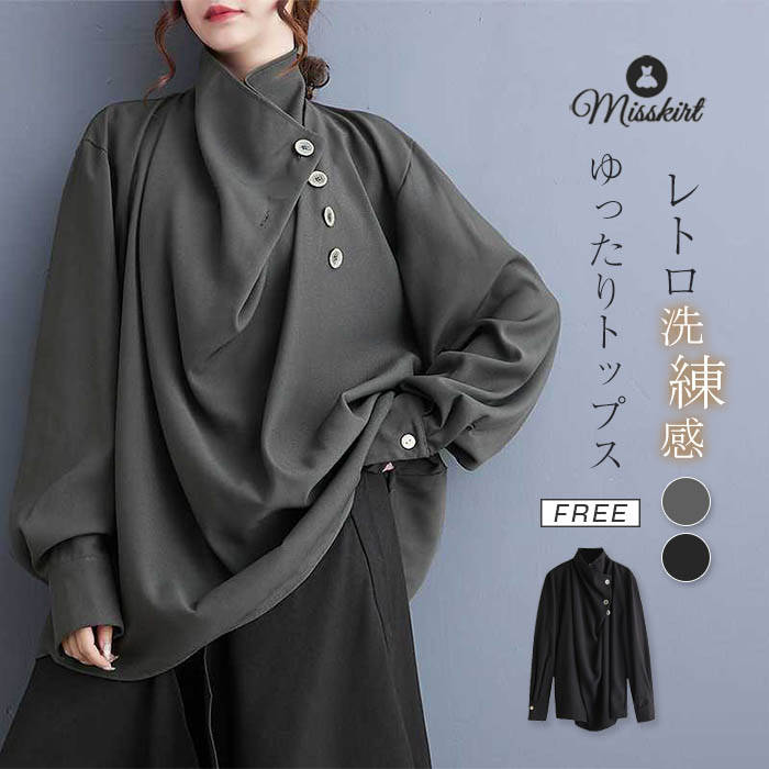 トップス シャツ 無地 立ち襟 ブラウス レデ...