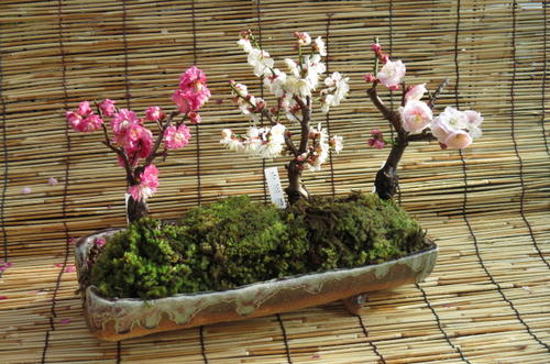 2026年3月頃開花梅盆栽三種 寄せ植え梅盆栽盆...