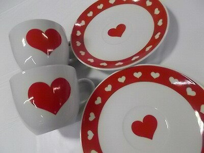 ハート柄コーヒーカップ&ソーサー ペアセッ...