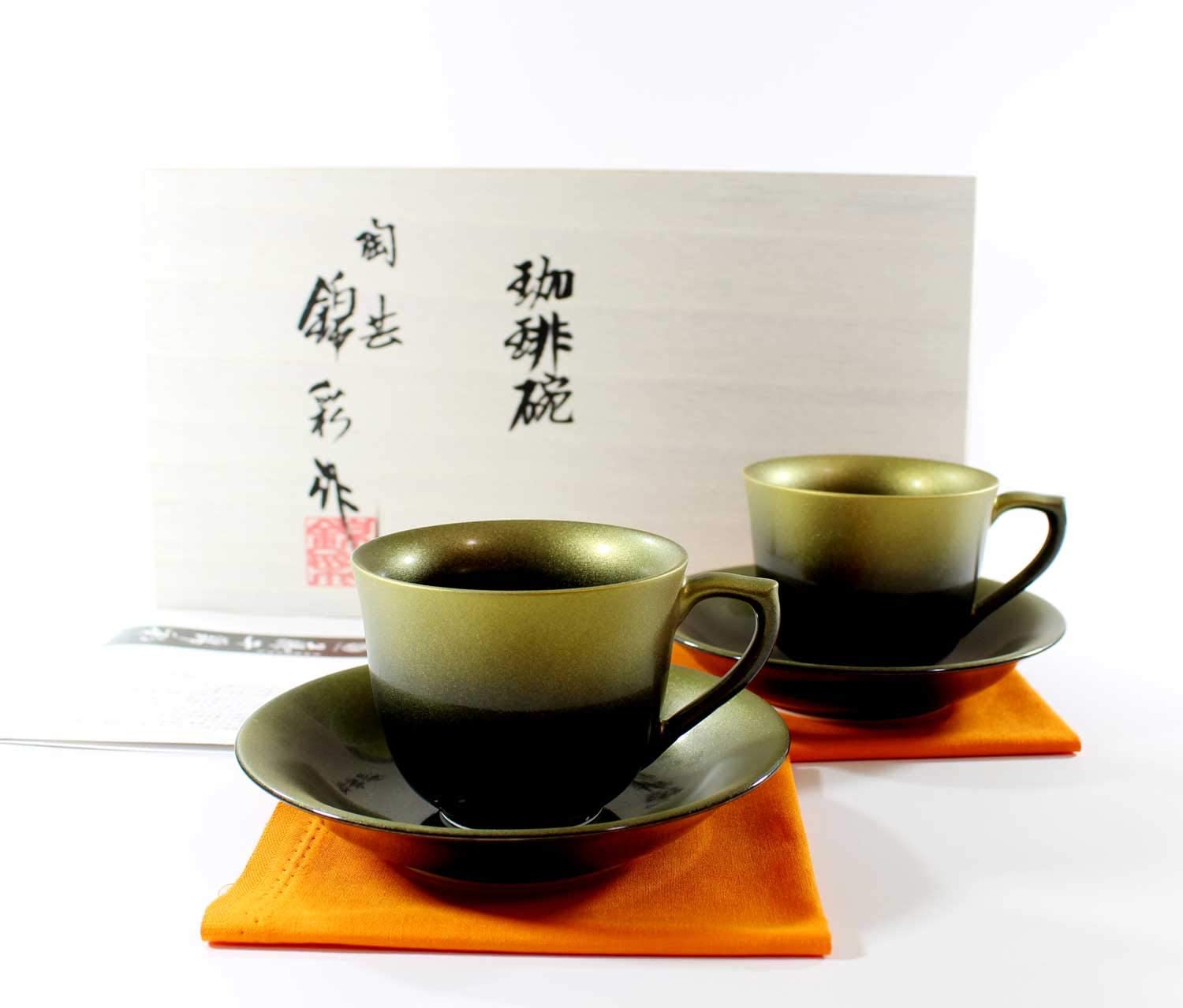 有田焼 天目釉金彩コーヒーカップペアセッ...