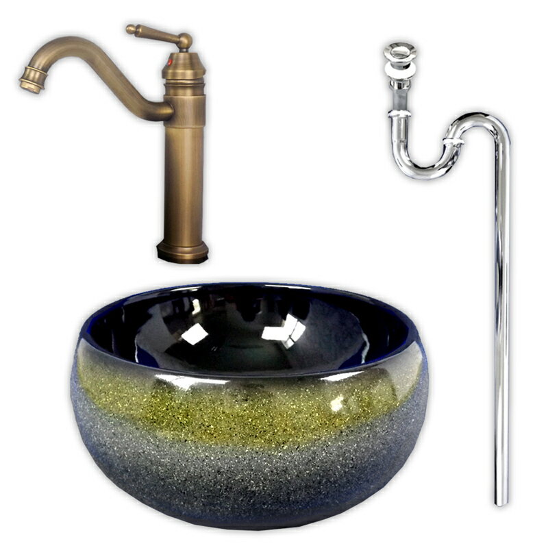 【送料無料】410x410ドラム型青黒釉絵柄洗面...
