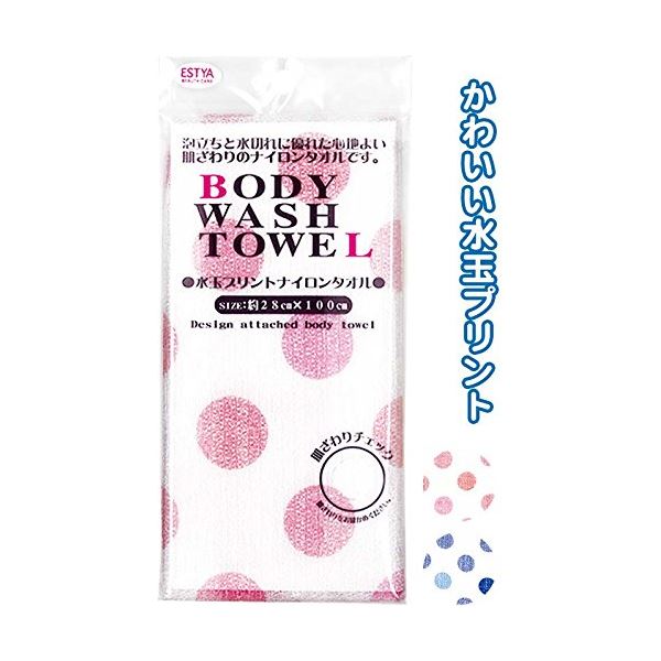 水玉プリントナイロンタオル(28x100cm) カラ...