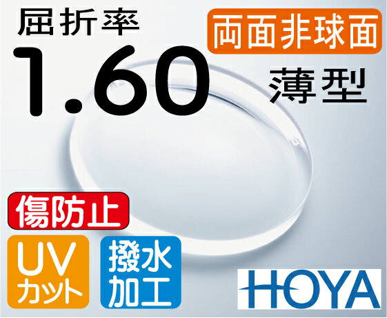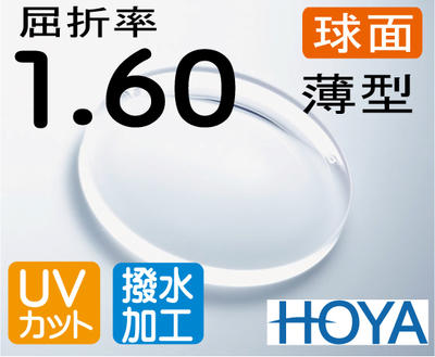 HOYA球面1.60薄型レンズ UV、撥水加工付(2枚...