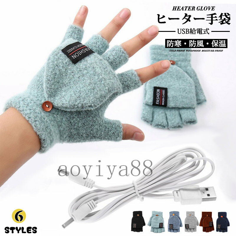 電熱グローブ 女性 手袋 USB加熱 ヒーター 発...