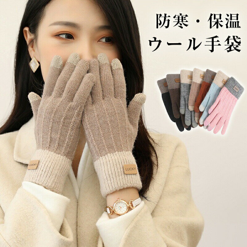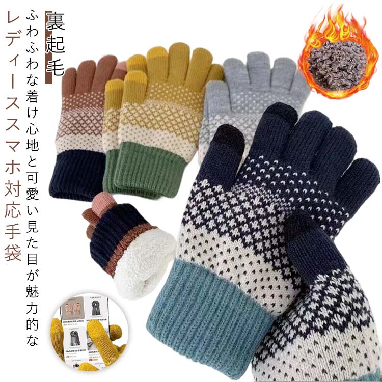 レディース スマホ対応 ニット手袋 秋冬 裏...