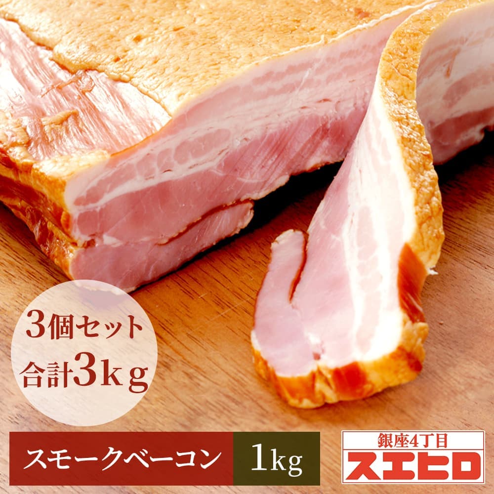 スモーク ベーコン ブロック 1kg×3個 セット (...
