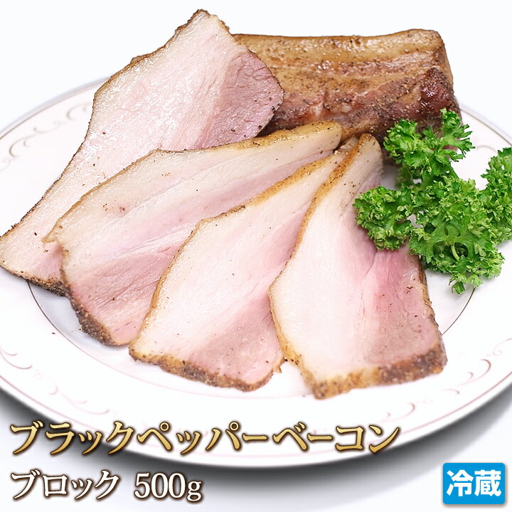 送料無料 ペッパー ベーコン 500g 豚肉 燻製 ...