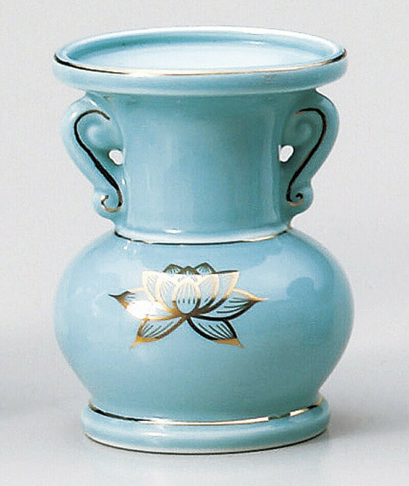 16.5cm 青磁 金はす 仏花(花生け)日本製 神具 ...